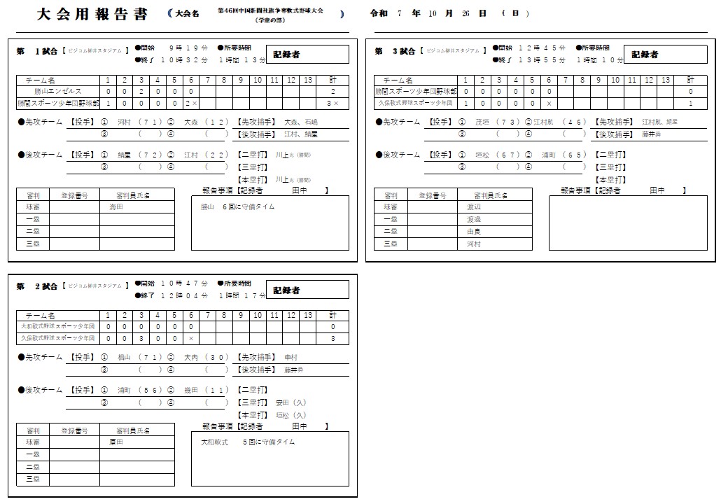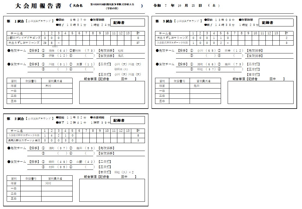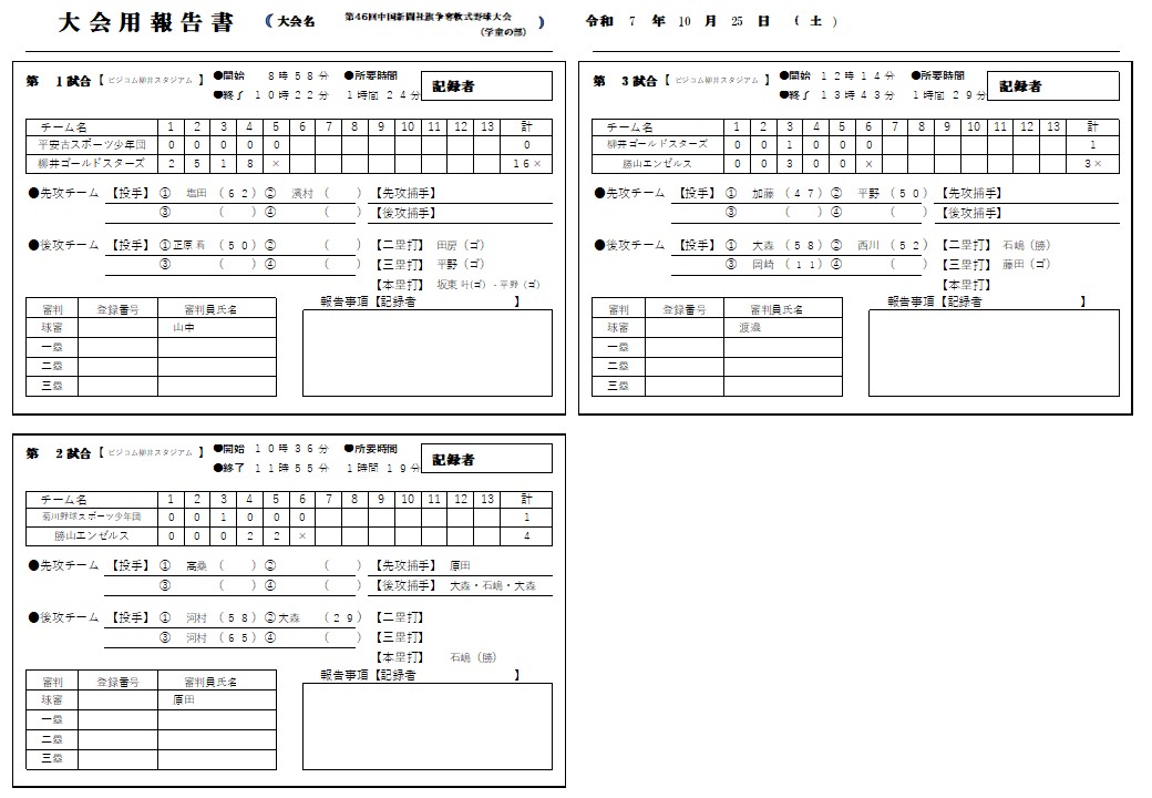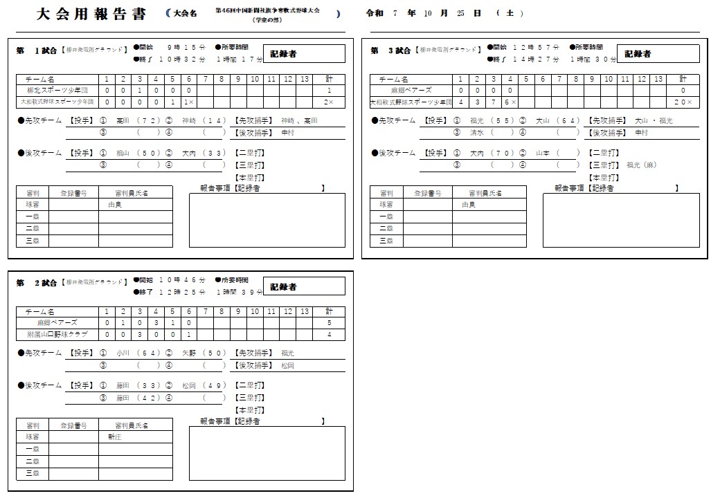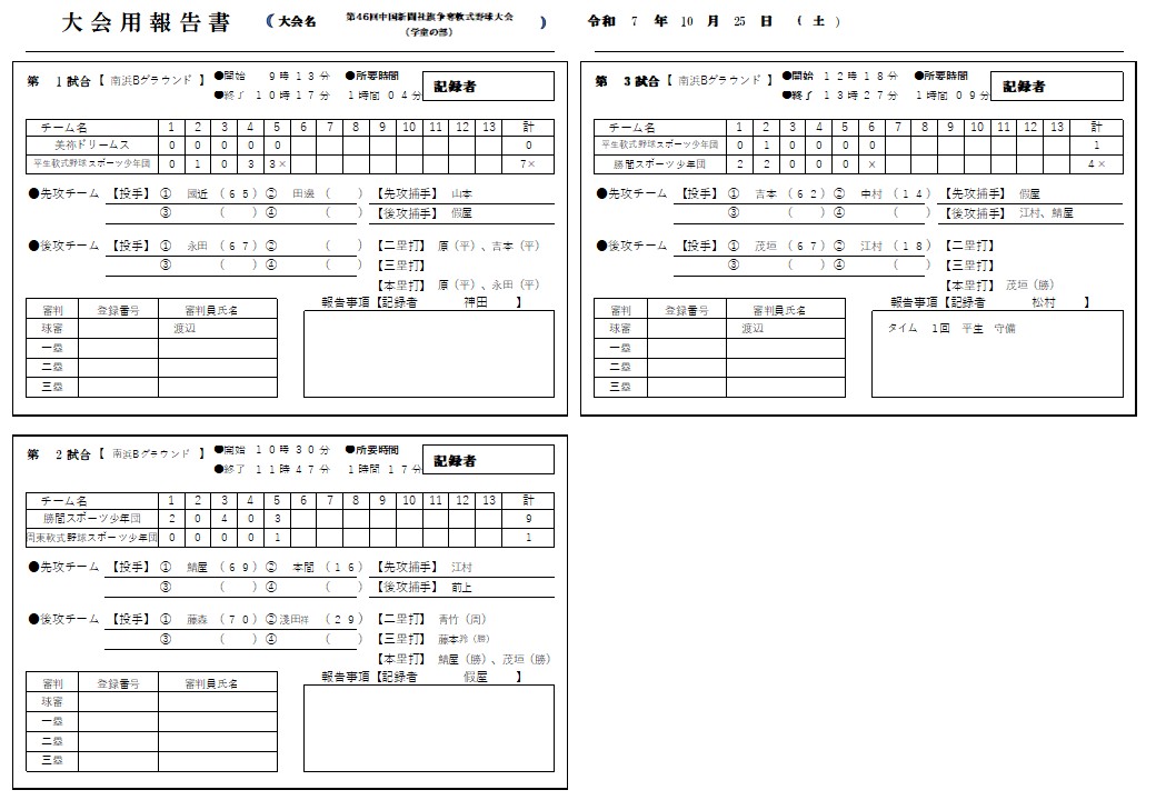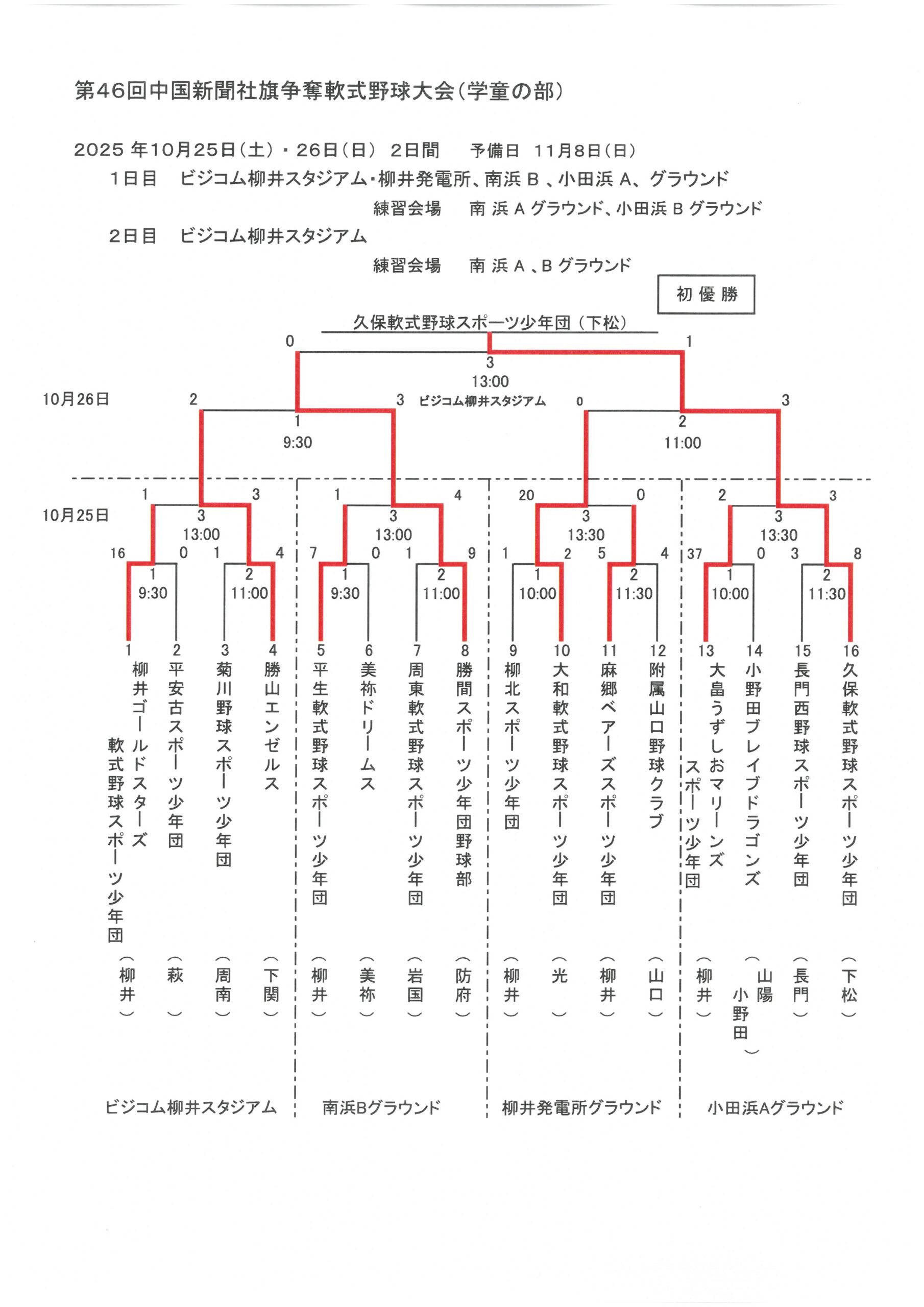 第64回中国新聞社旗争奪軟式野球大会(学童の部) 試合結果